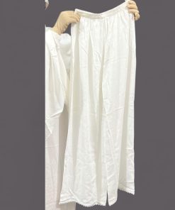 The matching plazo features a free-size adjustable strap, allowing you to customize the fit according to your comfort. Whether you are walking, praying, or performing rituals, the flexible waistband ensures a secure yet relaxed feel. This thoughtful design supports mobility without compromising modesty.
