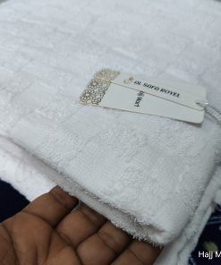 With a weight of 1600 grams, this towel is thick and absorbent, ensuring that you stay dry and comfortable throughout your journey. It measures 110 x 210 cm, making it large enough to wrap around the body comfortably. The elegant white color of the towel is symbolic of purity and simplicity, and it is ideal for use as an Ihram cloth during Hajj or Umrah.